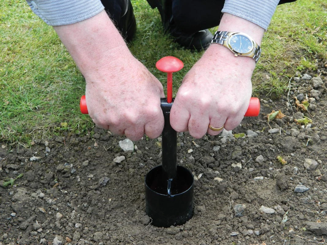 - Drücken Sie den Pflanzer in den Boden und drehen Sie ihn 3–4-mal.