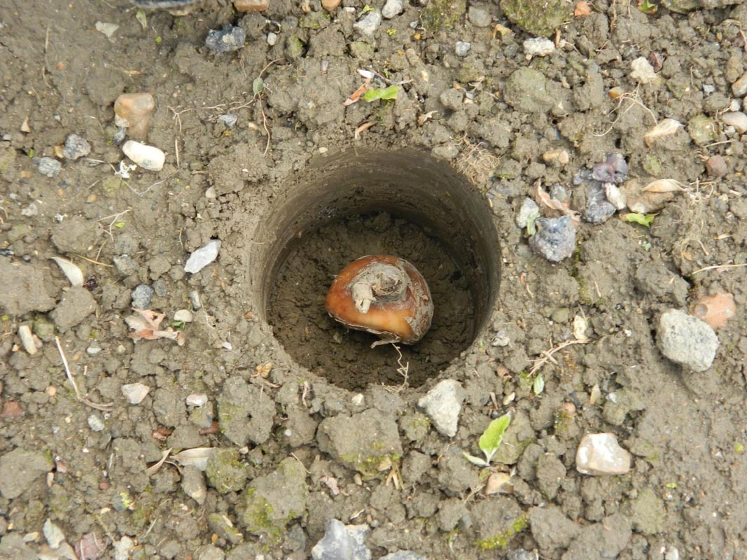 - Setzen Sie ihre Zwiebel in das fertige Loch.