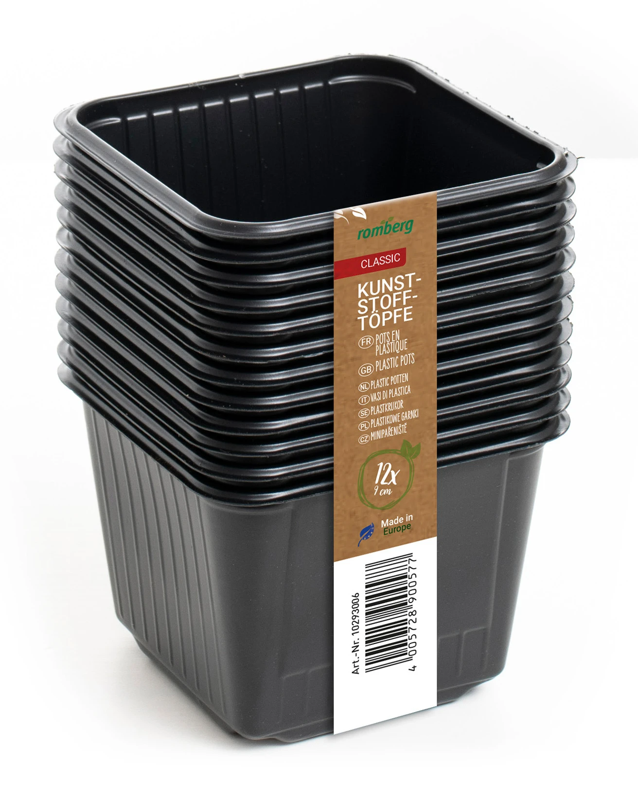 9 x 9 cm Kunststofftöpfe quadratisch (12 Stück)