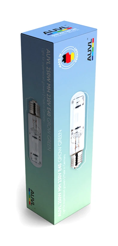 Die AUVL Grow Green Metallhalogenlampe stimuliert das Wachstum und sorgt für kompakte und kräftige Pflanzen. Sie verfügt über eine Quarzbogenröhre mit zusätzlichem Metallhalogenid, um die Effizienz und Farbwiedergabe des Lichts zu verbessern. Die AUVL Grow Green Metallhalogenlampe hat einen E40 Sockel und muss für den Betrieb an ein Vorschaltgerät angeschlossen werden. Mit 250 W erreicht sie einen Photonenstrom von 290 µmol/s und damit einen Photonenstrom pro Watt von 1,16 µmol/s.