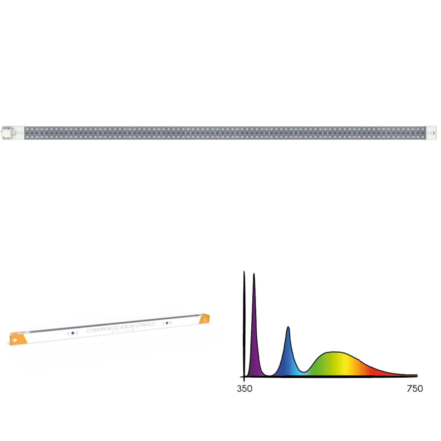 Die Secret Jardin Cosmorrow Ultraviolett LED Leuchte mit 40 Watt eignet sich durch Ihr Farbspektrum von 265nm besonders für die Stimulierung mit UV Strahlen. So kannst du das Immunsystem deiner Pflanzen stärken und gleichzeitig die Gefahr der Schimmelbildung eindämmen. Die Secret Jardin Cosmorrow Ultraviolett LED Leuchte mit 40 Watt leuchtet einen Abdeckungsbereich von 90 x 90 cm aus. Durch die modulare Bauweise der Cosmorrow Linie, kannst du dir ein Beleuchtungssystem aufbauen, welches optimal auf deine Bedürfnisse abgeschnitten ist. Die Montage kann sowohl horizontal als auch vertikal mittels Schrauben, Clips oder Haken erfolgen. Hierdurch kannst du Sie entweder als Hauptbeleuchtung nutzen, oder mit ihr dunkle Stellen deines Zeltes ausleuchten. Möchtest du deine Anbaufläche vergrößern und benötigst somit einen größeren Abdeckungsbereich, lässt sich das Cosmorrow System miteinander in einer separat erhältlichen Fassung kombinieren. Auch der Austausch von einzelnen Modulen deines Beleuchtungssystems stellt somit kein Problem dar.