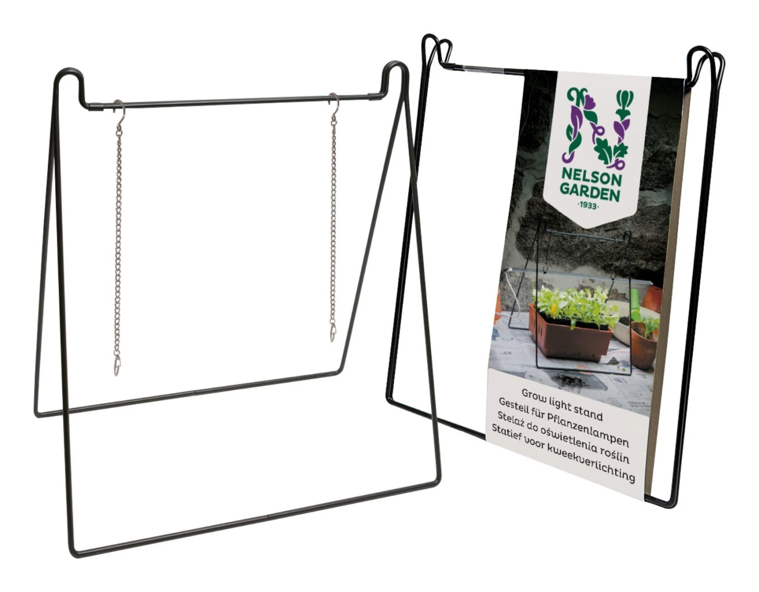 Stabiles Gestell für unsere Pflanzenlampen, Art. 5586A-ng, 5566A-ng und 5567A-ng. Leicht auf- und zusammenklappbar. Platzsparend klappbar bei Nichtverwendung. Lampenaufhängung mit Haken und verstellbaren Ketten (inklusive). Pflanzenbeleuchtung zur Vorkultur im Frühjahr oder als Zusatzlampe für Zimmerkulturen. Ideal in Kombination mit einer Heizmatte. Durch die Wärme von unten keimen Samen besser, Stecklinge bekommen schneller Wurzeln.