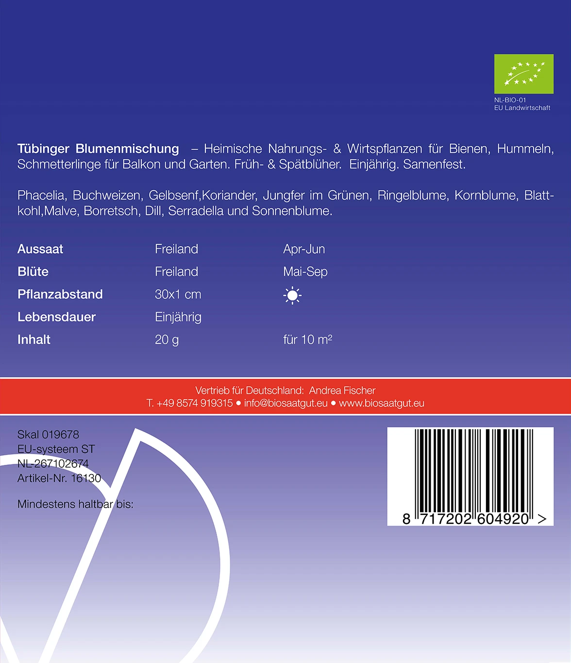 ![Tübinger Blumenmischung | BIO Blumensamenmischung Von De Bolster [MHD 12/2023] 4 Tübinger Blumenmischung | BIO Blumensamenmischung Von De Bolster [MHD 12/2023] – Bild 2](https://www.pegasusamen.com/wp-content/uploads/2025/01/535140-BIO-Tuebinger-Blumenmischung-16130-db-1.webp)